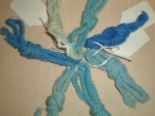 Then there is my attempt to capture the samples I dyed last night for my cloud jumper. The real problem is lack of daylight.