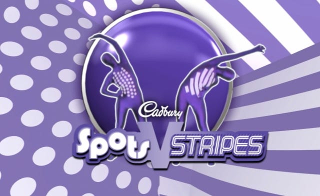 Anyone remember how Cadburys launched this big spots vs stripes concept a year or so ago? Apparently the campaign has ended. I can't say it had a great effect on me except that i have tended to buy my Wispas in the spotty wrappers just because polka dots are my first love. However, when spots are not available, stripes are my next choice.