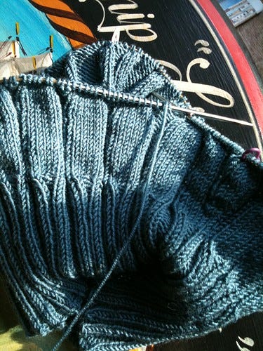 Of course it is often said that there is nothing new on heaven or earth, so I find it easy to believe that life is mostly a series of repeating cycles of behaviour. This is often born out in knitting, where I find myself making the same pattern more than once, or at least using the familiar increases and decreases. But with the SunRay Ribbing top I am returning to something I had mostly frogged and cast aside.