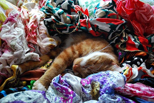 Sign ups close on Thursday. My views on cup warmers are not as well known as those on guerilla knitting and have never generated any death threats but I have indicated a preference for one of the other two. You also send a FQ worth of quality scraps. No inspiration mosaic for this one but a cat picture instead.