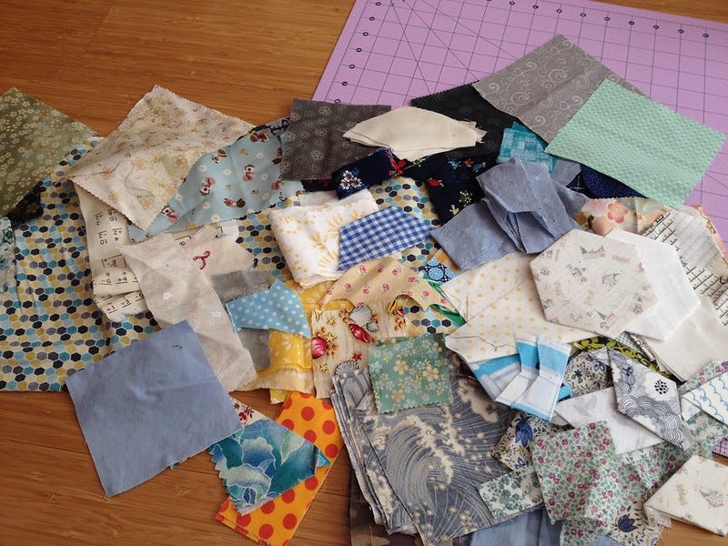 For the Simply Mini swap (another one from Instagram) I had a big scrap dive using the hexagon fabric on the left as the main fabric.