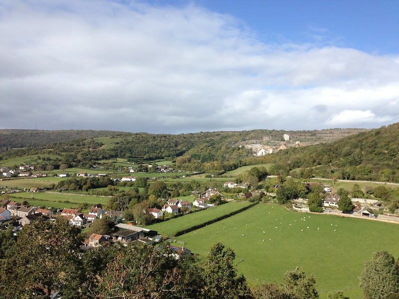 The inspiration behind my colour scheme is one of my Somerset-from-the-train photos a la this: