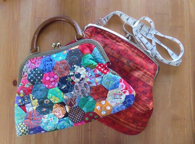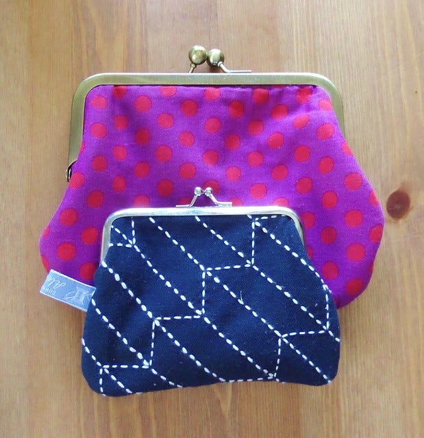 I had completely forgotten about these when I was selecting things to show her. Turns out this is exactly what she wanted. She particularly adored the patchwork one but I made it clear it would have to be a single fabric piece to get the workshop done in a day. So...I'll be teaching a metal frame handbag making workshop in July preceded by a shopping outing to Shinjuku for a frame and fabric for the lining and outer - to be chosen by the attendees using guidance from me. I am off there on Monday to scope out the prices of various bits so she can work out the costs of the class. Exciting!