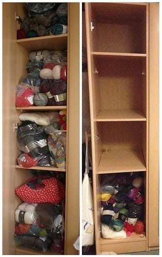 This is a before (left) and after (right) on my yarn stash.