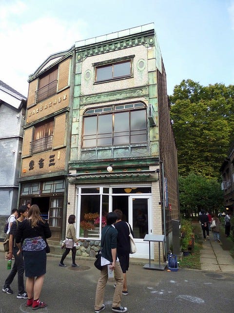 Some of the houses had at least parts of their original gardens with them, like this one which was the House of Korekiyo Takahashi, who was an important politician and it was the site of an important coup. The house dates from around 1900.