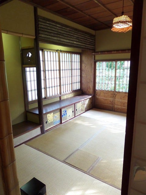 Room sizes are still measured in terms of how many tatami mats the floor takes (you see it in estate agent particulars here) and these mats are the rectangles you can see in the 'usual' photo above. They are traditionally made of woven bamboo. You would never wear shoes if walking on tatami mats so as I went around the various properties I was constantly taking my shoes off and putting them back on again. This was the internal kitchen area.