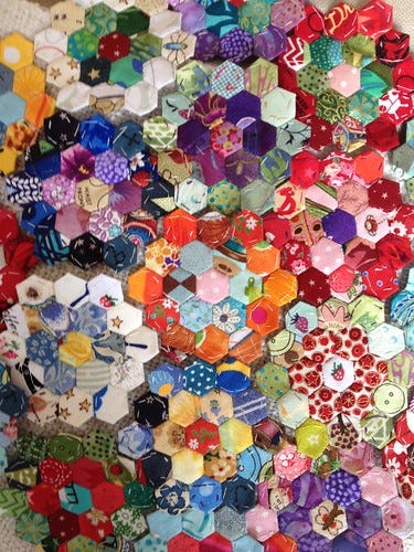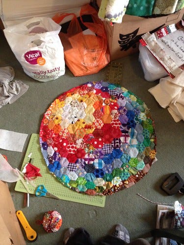 The rest of my free time is spent packing or saying goodbye to people. But I do find a few moments for aimless patchwork. Results so far...