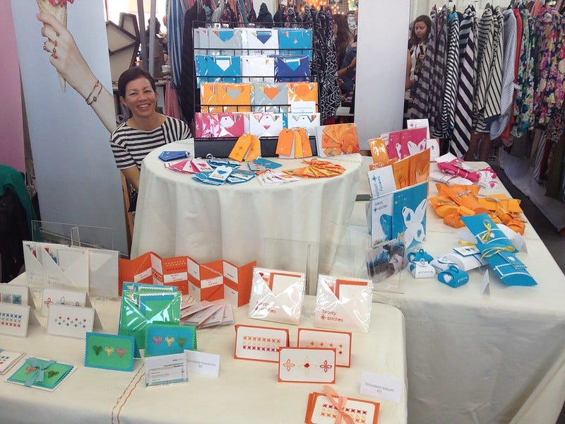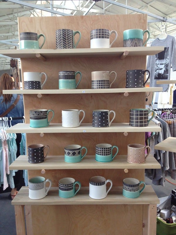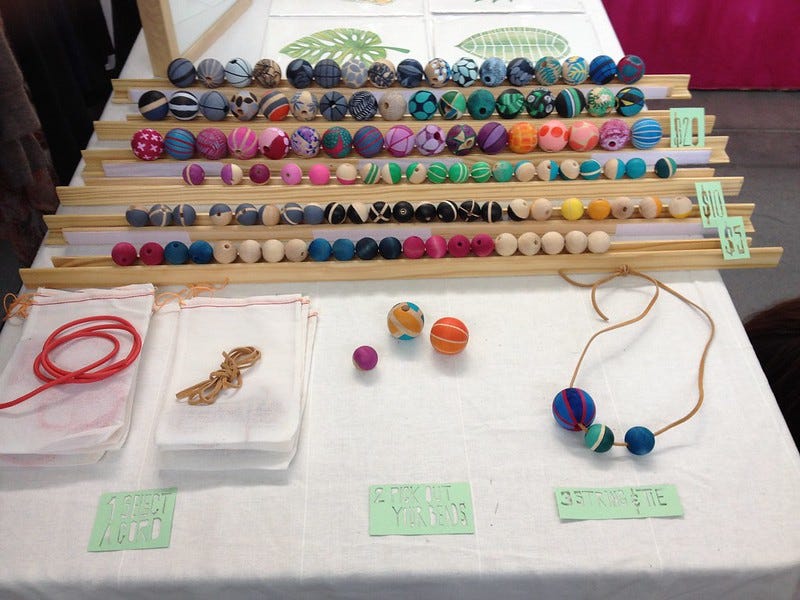 Make your own necklace. I thought this was an interesting idea. The cord was free and you paid for the beads - $5, $10 or $20 each from front to back. But I baulked at the idea of paying £6.50 for a wooden bead half painted.