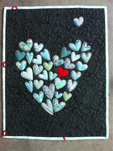 It is definitely the quilting that makes it though. Free arm quilting is again not something I have mastered although I do like machine embroidery. You do need a long arm machine for it though unless you are making a miniature quilt. But this one is something that interests me.