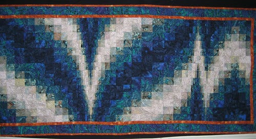 I have loved Bargello Embroidery for a long time and became intrigued by the patchwork after seeing some at the Festival of Quilts. The larger pieces are pretty mental.