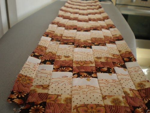 I am not amazing at sewing straight lines. My mind wanders. This was therefore not a natural project for me - but was something I'd been wanting to try for a while. Bargello Patchwork.