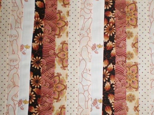 The one above is actually quite 'normal' compared to the ones I've been looking at with the assistance of the "Twist and Turn Bargello Quilts" book (non-affiliate link) and if you look at that click on the extra images for more mind bending examples.) It all starts with strips the same width being sewn together going from light to dark in your chosen colourway.