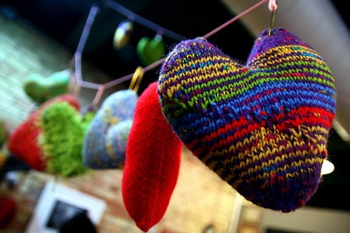 In my teens I had these wrist to elbow on both arms and was constantly making holes in cushions having safety pinned a bracelet to it. This is a Flickr set rather than a blog because it was featured in a CRAFT blog post. I'm really tempted to make one now. Mine were nearly as good as hers when I was at the height of my powers - but she has taken it to the next level.