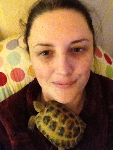 It is rather lovely to have a tortoise fall asleep on your neck. Pooch said he'd passed out because of the smell but I prefer to believe he liked the warmth and felt safe.