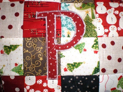 I was going to outline the initials with Clover mini bias tape in silver but it was too darn fiddly. I went with bondaweb and zig zag using some nice shiny silver thread.