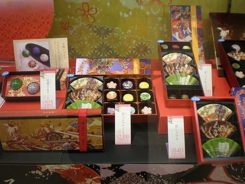 I love it when you're out and about and you come across a luxury chocolate festival. This one happened to be on the 11th floor of a department store next to one mother of a craft shop, but more of that another time. I'm just going to let the pictures speak for themselves...and these represent just a selection of what was on offer: