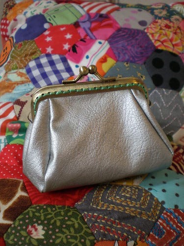 I decided, perhaps rashly, to use some leather type fabric in silver which I've had in stash, just waiting for the right project. I paired it with some sewing thread fabric that I really wish I had more of (let me know if you know where I can get some).