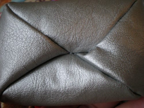 I got going and followed the excellent instructions our lovely hostess had provided. I wish I'd sewn the lining first as I screwed up joining the points when I did the pleather.