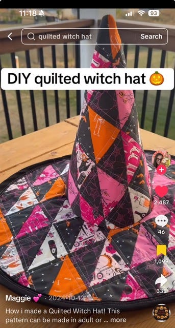 How have I missed the witches hat phenomena in previous years? I came across it on TikTok, which I rarely look at but am on here, but was instantly transfixed. This post from Lavender Rose Fabrics is what introduced me.