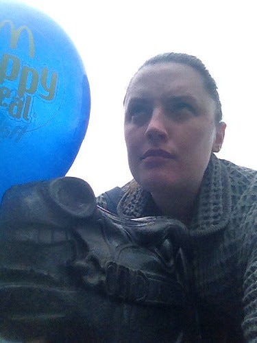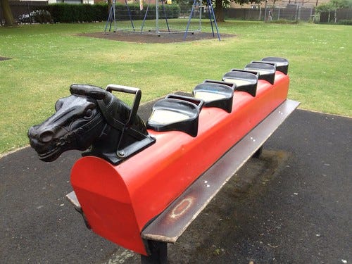 I am not saying it is the exact same one as appeared in Herne Bay playground circa 1983 but it must be a close relation, and I've never seen one anywhere else. The pelvic thrusting necessary to get it to move was probably good for my back too. However, after no less than two playgrounds, a McDonalds, several buses and an ice cream I was shattered and regretfully dropped him back home. Then later that day my littlest sister arrived Chez Byrne to stay the night and eat one of Pooch's roast lunches on Sunday.