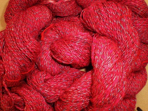 I didn't alter this one so you can see the red, off-white and turquoise it is plied with. So perfectly balanced - I couldn't be happier!