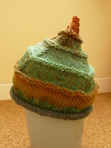 He is the pale ginger one in the middle. Now don't make any mistake here - obviously they've gingered up his hair to go with the whole oi-rish thing - but he is 100% beef. He is 6ft6 and 272 lb. But they always fake tan the others whereas Seamus seems to glow persil white. So, this leads me to believe he has sensitive skin that maybe burns in the sun. Now to go with that irish puck-type hair I'm thinking an elf style hat. So I have chosen the Ribba Hat by WoollyWormhead.