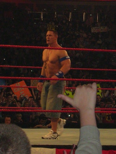 Now Cena is not only a wrestler, he's also starred in several films. Not quite in the Rock's league, but he's not that bad considering. So he has nothing to worry about, which is why I have chosen ribbed boxershorts. Because the ribbing will kind of ....cling.