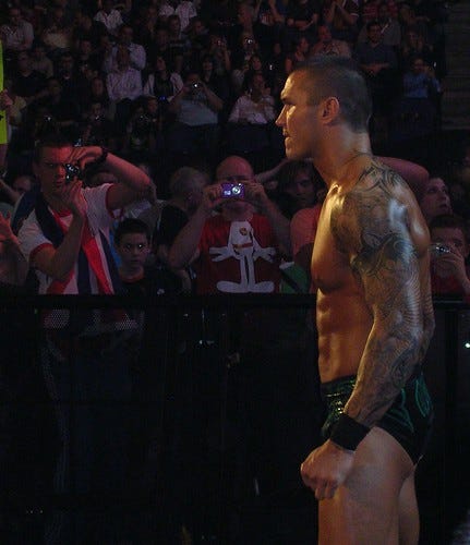 Now Randy, short for Randall but also apparently an abbreviation for Andrew, is in my opinion pretty near physically perfect. On WWE he is known as the Apex Predator. 6ft4, 245lbs, which means unbelievably he quite often looks short when with the others. He is fit though.
