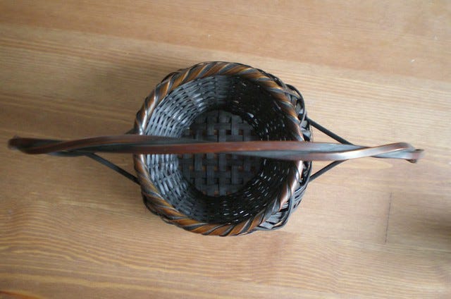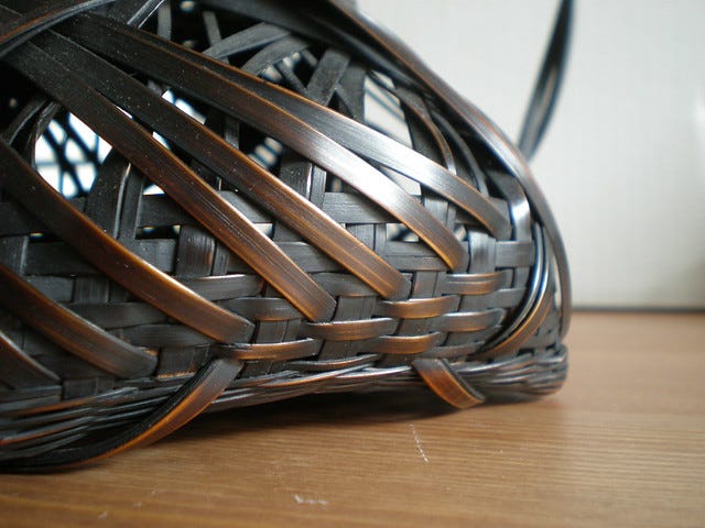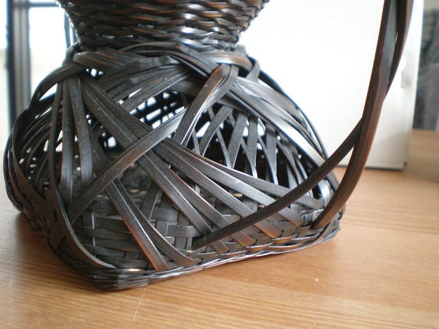 My only move towards actually giving basket weaving a go is Pinterest and some 100 Yen shop weaving strips. What I would love is to be able to make one of the handbags I saw in the shop today for...£300. I know some people (only two really) who would think £300 was cheap for a designer one-of-a-kind handbag but I am not someone who spends so much on them. The craftsmanship is amazing though. I stayed in the shop for ages carefully not drooling on the vases, baskets, creations and whatnots before coming back a second time to make my purchase, much to the delight of the lovely man there.Â