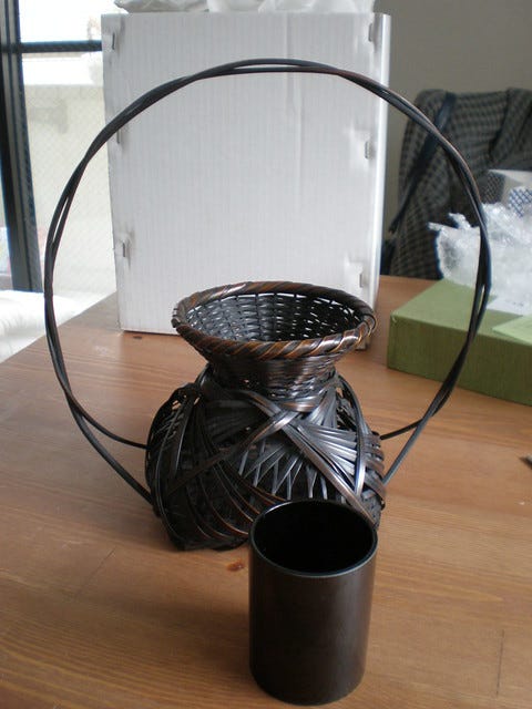 Squeeeee! The little vessel is to go inside to hold the water and flowers. You see, just as this whole japan-venture was taking shape I was developing an interest in weaving. I got this book (amazon link)...