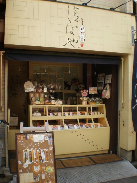 This shop was selling cats' tails, which is a traditional cake/sweet. They looked like tubes of sponge or possibly wafer filled with something but closed at both ends. The menu was only in japanese so I woosed out.