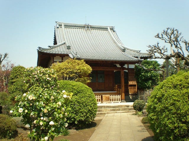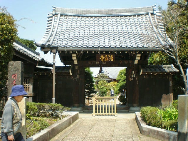 It seems very odd that I have been a regular visitor to Nippori's fabric district (using the East exit of the station) without ever wondering what I would find if I used the West exit. It turns out the answer is Yanaka! A small area of West Tokyo between Nippori and Ueno. The first things you come to when you visit are two Temples. The first is Hongyoji which has been there since 1709.