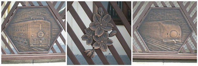 The bridge itself was rather beautiful having pictures cast in hexagons across it with sakura flowers in between.