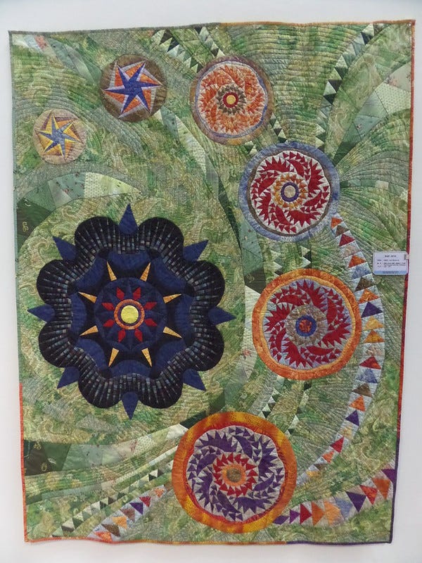 There are so many more quilt photos in the Flickr set! And detail shots of almost all the full size ones (and some of the small ones) I took photos of. All that remains to share is the shopping and what came home with me. On to part 3!