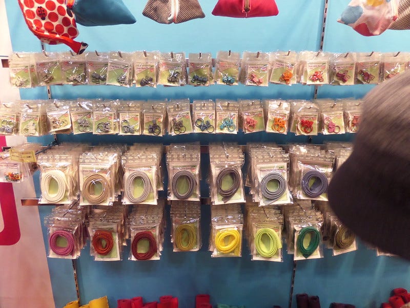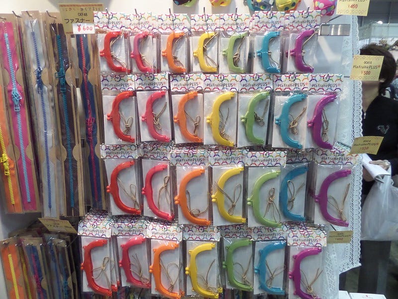 You buy each side of the zip, the pull, the bit of metal that marks the end etc and put it together yourself. I dunno. I guess it was the new product for the year. For me, I was coo-ing over the purse frames.