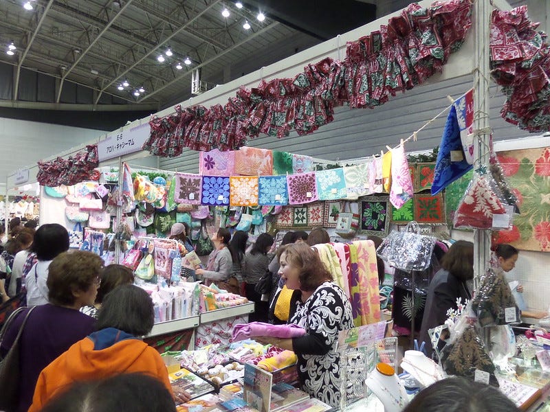 ...but they are a big thing here. There is a large Japanese population in Hawaii (and not a lot of people know that) for historical reasons and so Hawaiian quilting is a big thing here. As well as Olympus there were a lot of people selling kits. Some of these stands were mobbed...