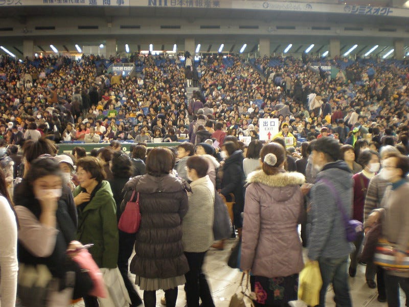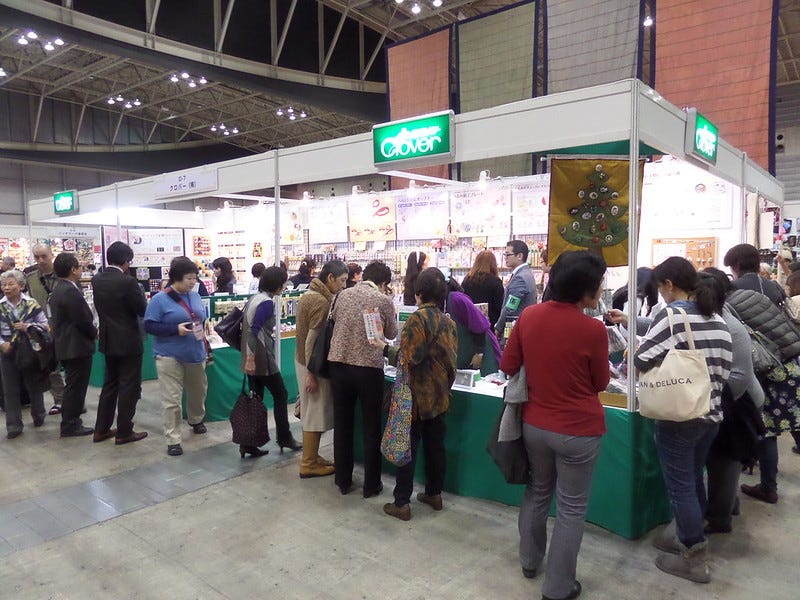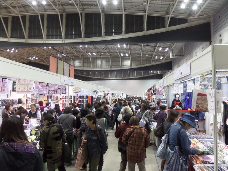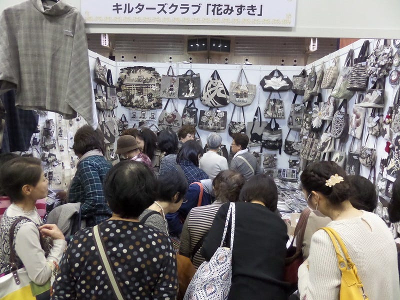 Overall this was an amazing quilt show. I went on the opening day and got there for just after opening time and was able to see all the quilts without having to use elbows or my usual peer-over-their-heads technique (handy to be 5'7" when your average japanese lady is 5'2") - most of my photos are person-free. This contrasts completely with my experience of the Tokyo quilt show (genuine photo from when I was there in January).