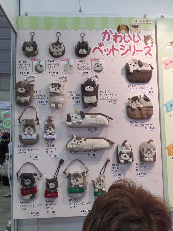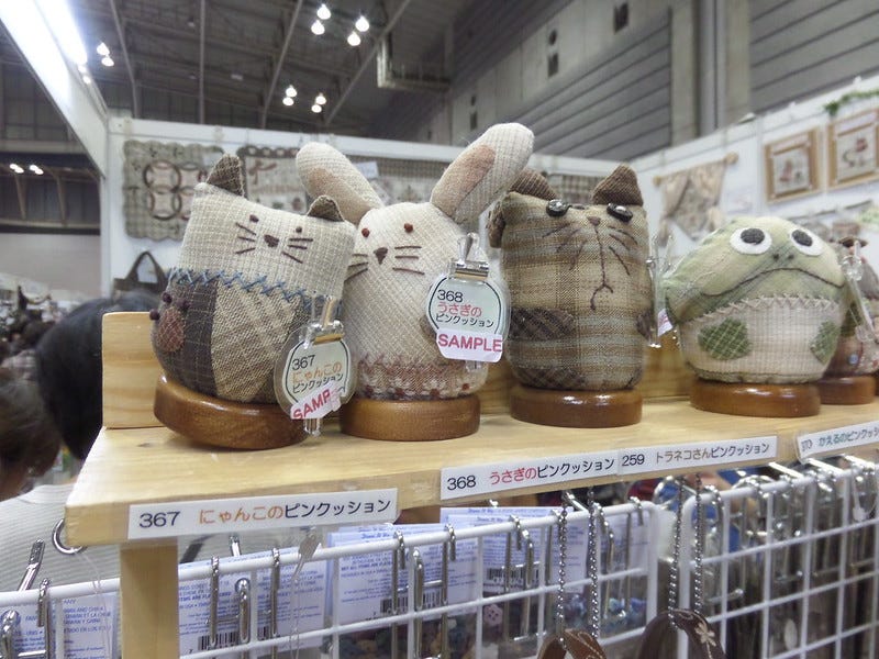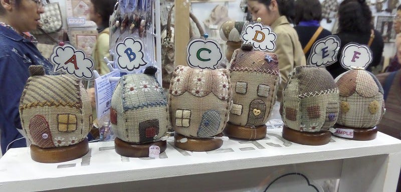 ...while others were relatively empty. Just like the waffle and french toast cafes in Omotesanda. One minute you've got teenagers queuing around the block in the pouring rain for a bite of chocolate pizza, next day you've got spiderwebs across the doorway. On another stand I absolutely fell for these house pincushions.