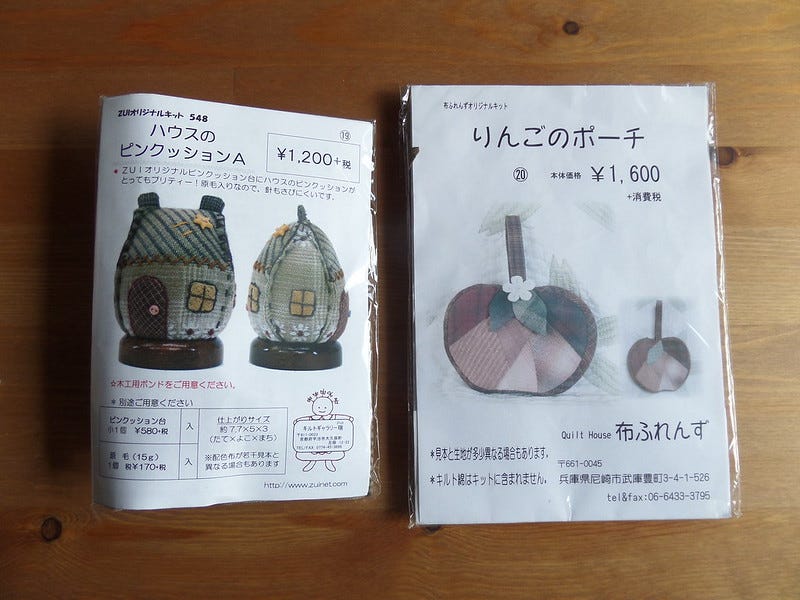 Lastly, two small kits - one for house pincushion A in the photo earlier in this post, and another for an apple pouch I've had pinned on Pinterest since before coming to Japan was a twinkle in Pooch's eye.