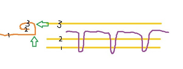 Once you've stopped laughing, you'll realise that 1 is the 'main' piece of cloth and 2 and 3 are the layers of cloth you get when you fold it at the hemline in the two places shown by the green arrows. So it's folded over twice to give a neat hem - nothing unusual there. What is unusual though is you get no sign of any stitching on the inner edge - above layer 3 in the diagram. The only sign of stitching you get is on the outside - below layer 1 in the diagram. Hence you get what you see in the photo above.